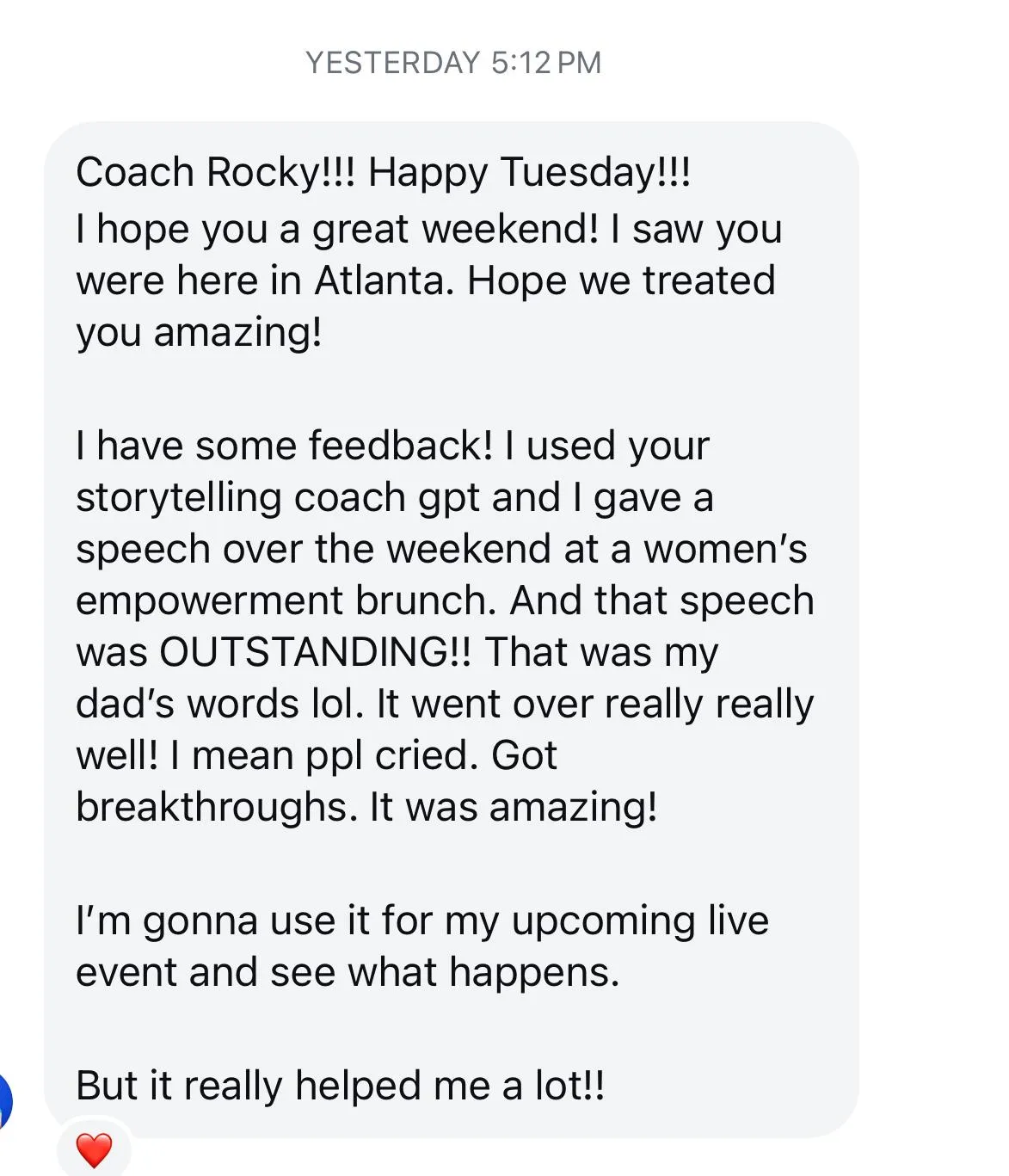 You’ll get 20+ custom GPTs built specifically for speakers. These tools help you create content, pitch effectively, follow up like a pro, get rebooked, and systemize your entire speaking business.